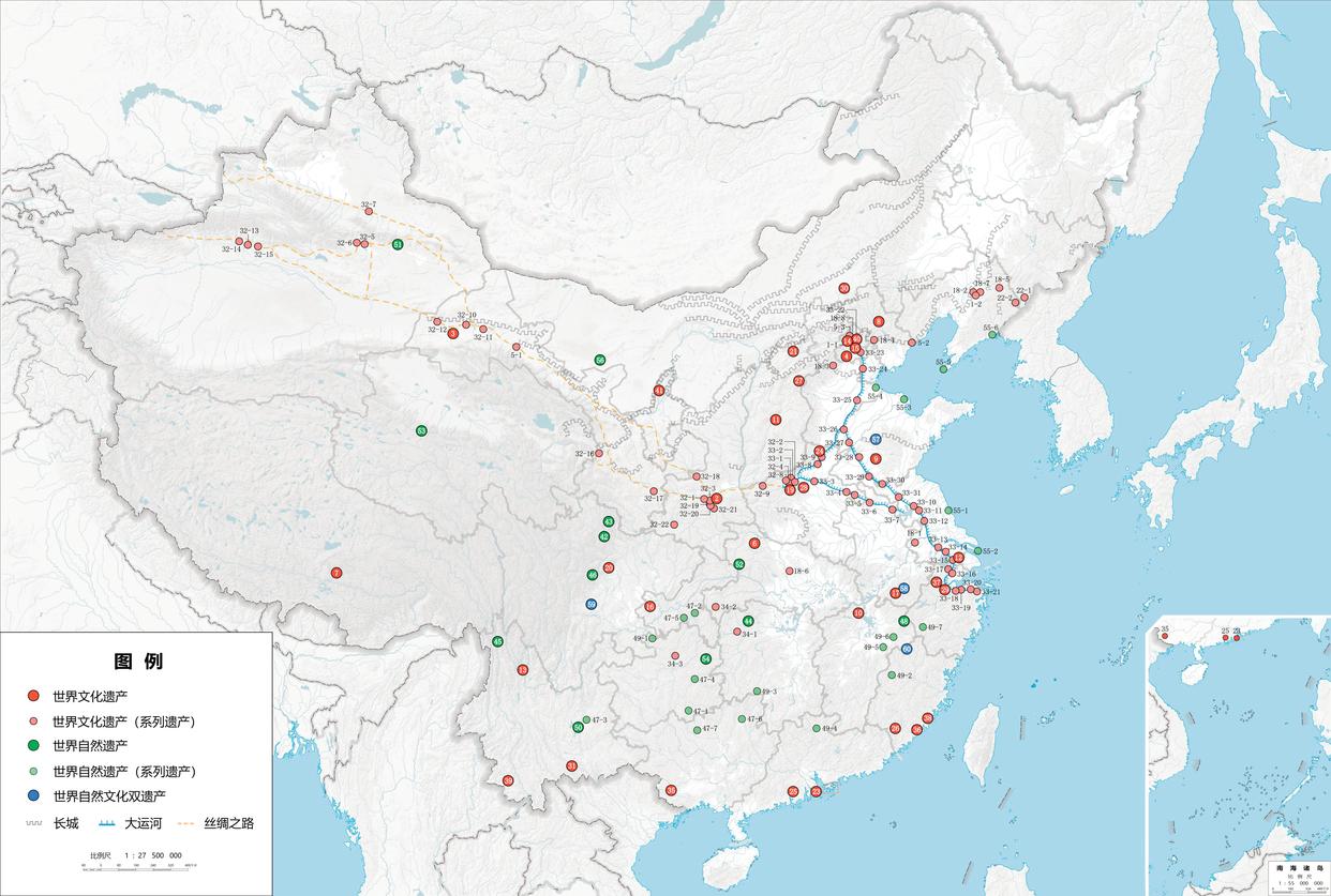 在中国世界遗产分布图上,一个个小圆点犹如耀眼明珠点亮华夏大地。